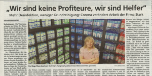 WESER KURIER 11.04.2020 Das STARKE-Team ist auf die Corona Pandemie vorbereitet und unterstützt die Kunden mit der hygienischen und desinfizierenden Reinigung.